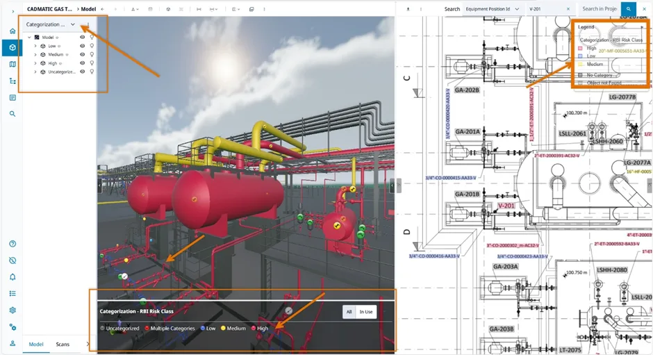 In eShare, risks can be color-coded directly on plant documentation, layouts, and drawings. The status of a risk is immediately visible, even before a single word is read.