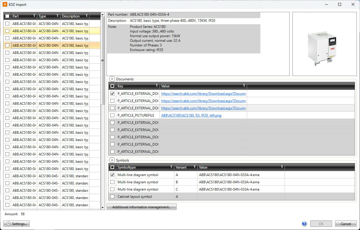 Creating product models just got easier! Now you can import EDZ files directly, adding product details, symbols, images, and manuals into CADMATIC Electrical. Customize what you import, focusing only on the data you need.