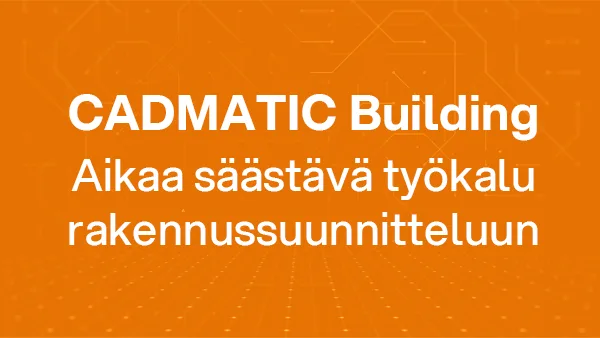 CADMATIC Building on suomalainen BIM-ohjelmisto, jolla suunnittelet ja tuotat tietomallit sekä luetteloinnit yhdellä työkalulla – helposti ja tehokkaasti. Ohjelmisto automatisoi monia työvaiheita, mikä vähentää virheitä ja nopeuttaa suunnittelua.